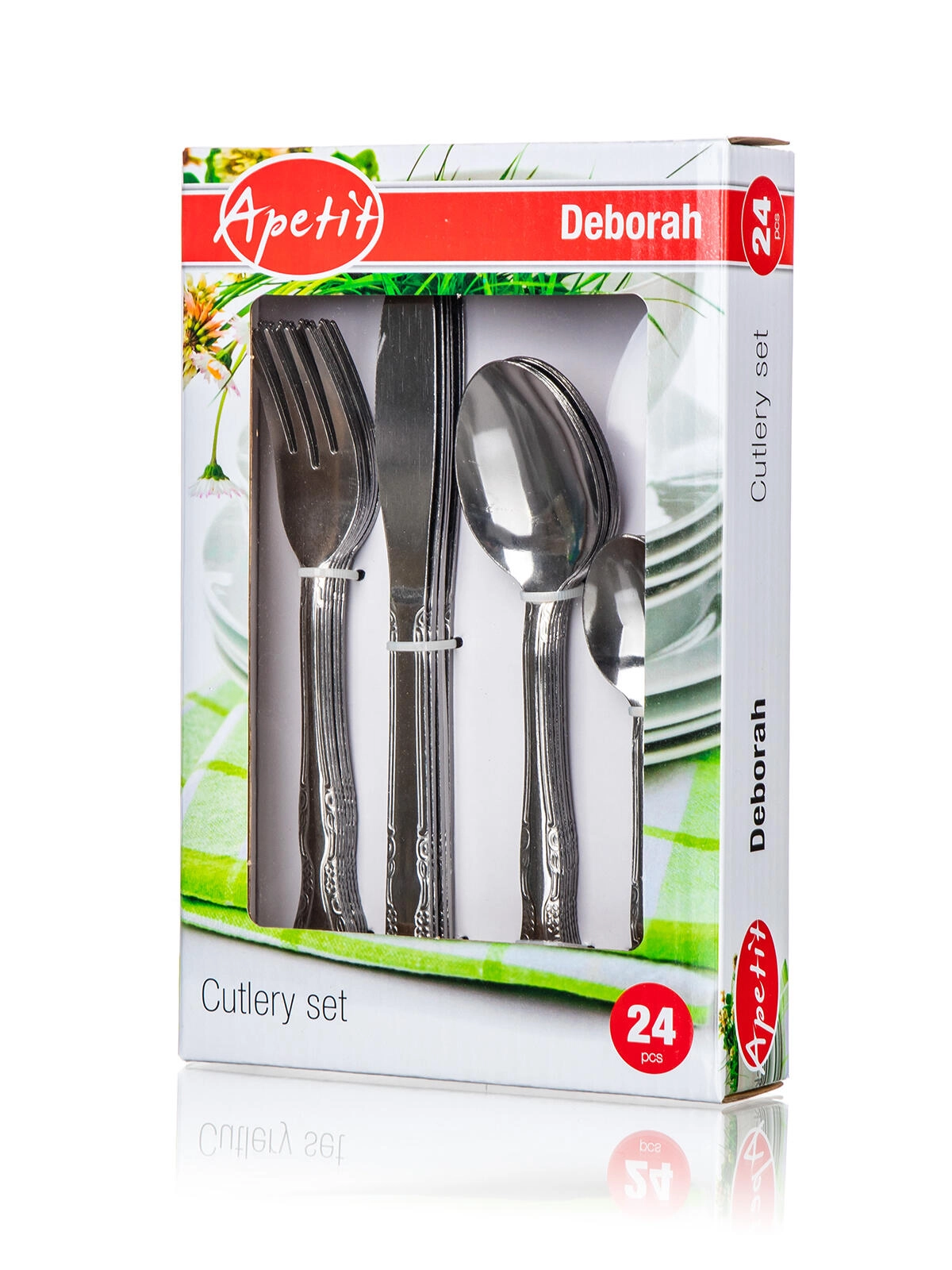 The APETIT Deborah cutlery set stands out with its timeless handle pattern and reliable stainless steel quality. Ideal for home, cottage, or hosting—everything coordinated in a unified design for a perfectly set table.