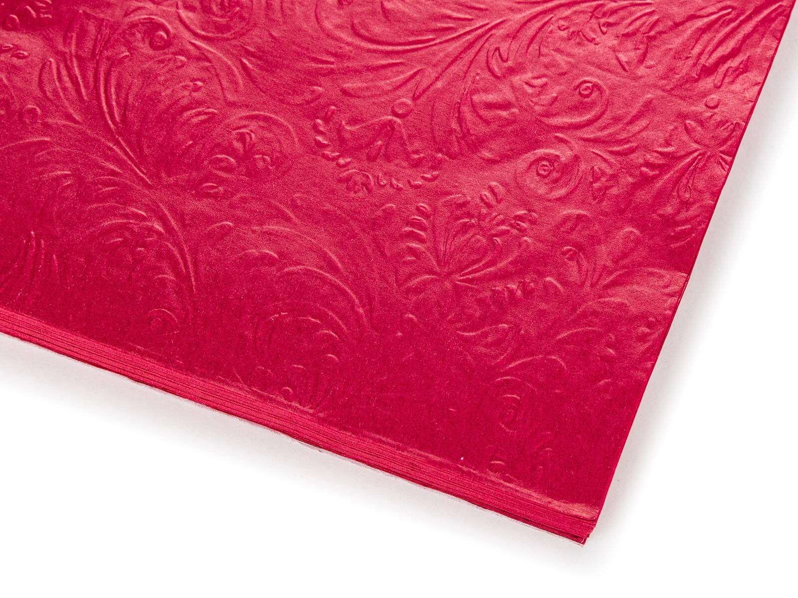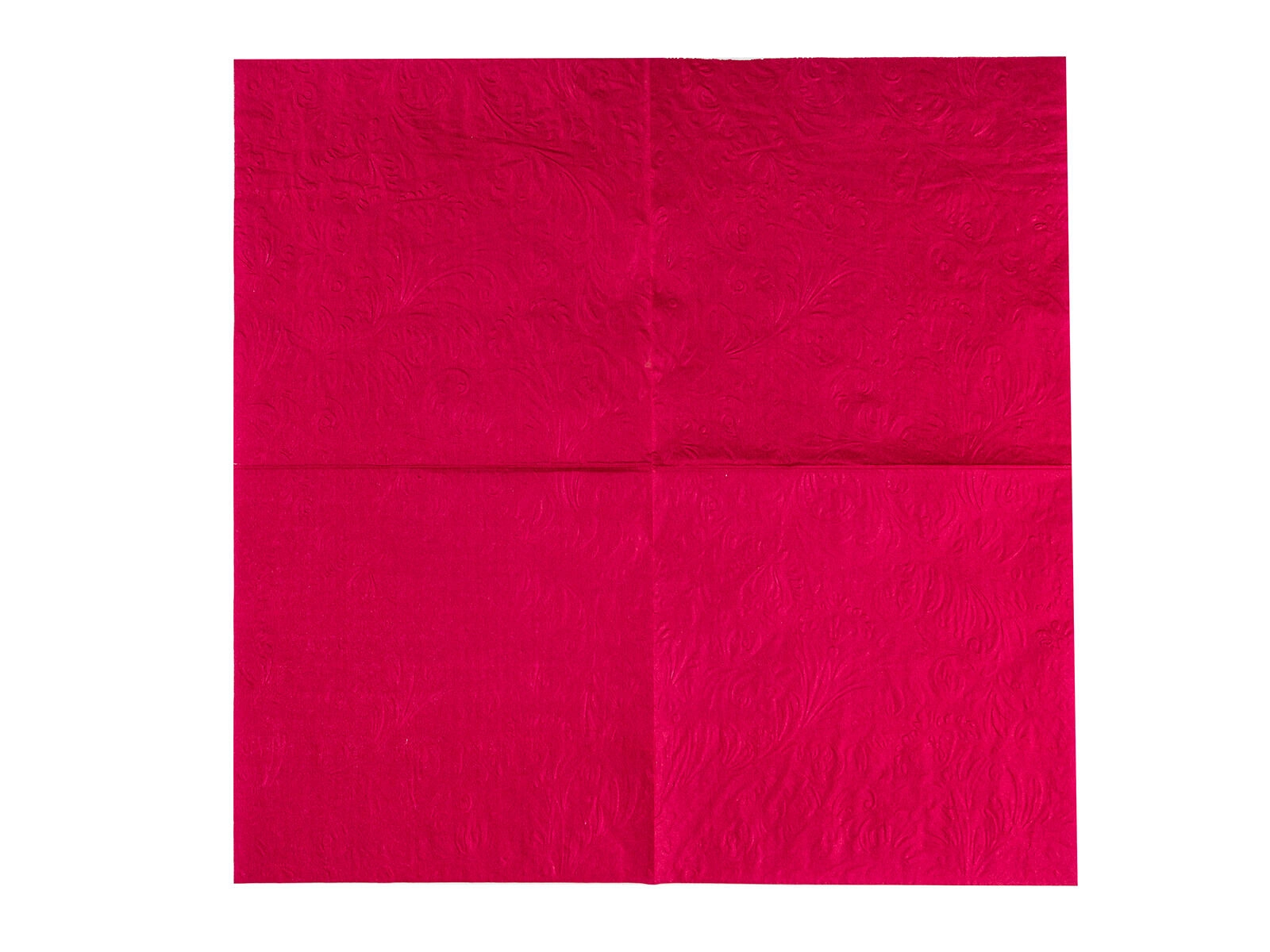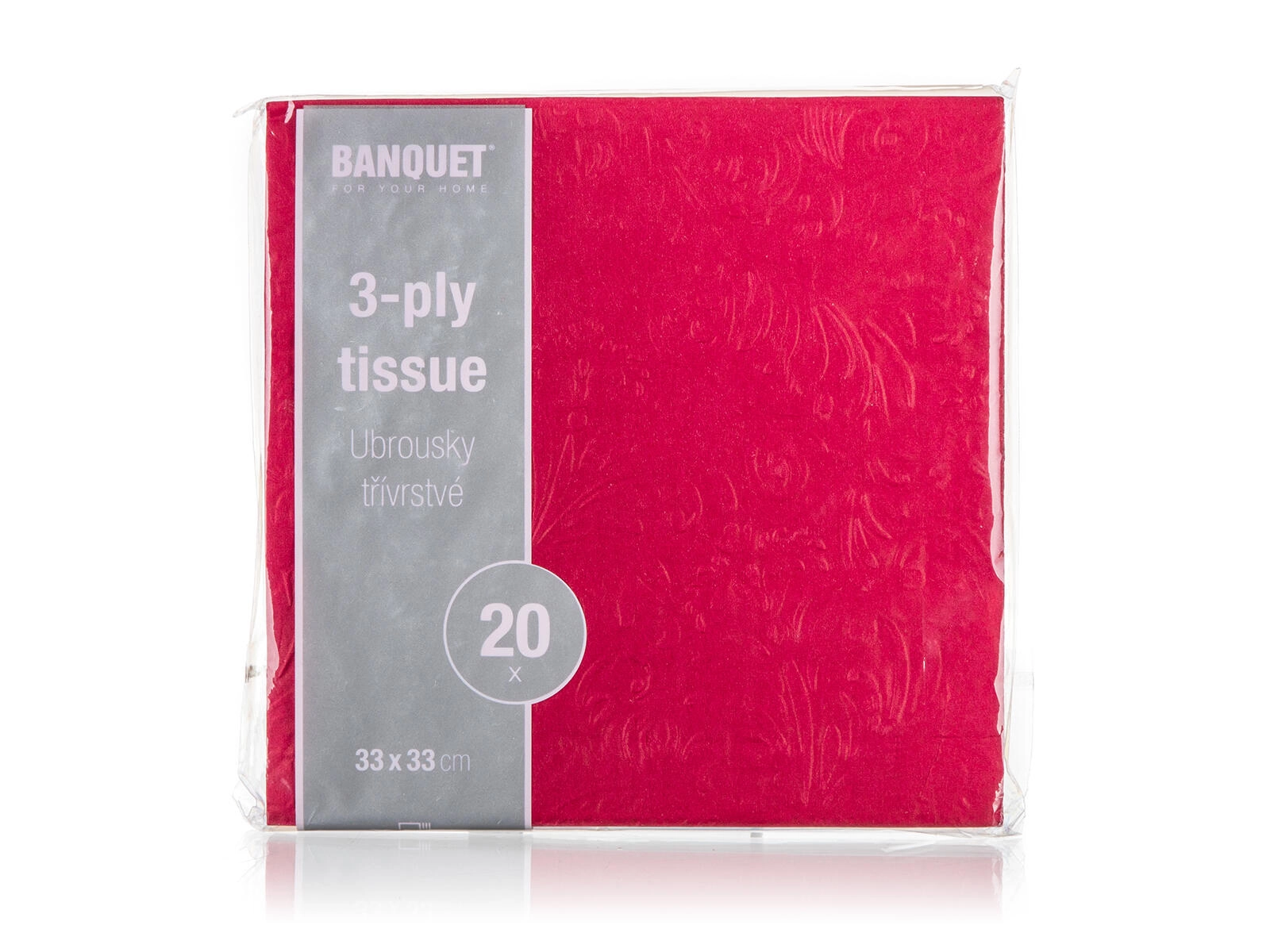 Elegant paper napkins in a bordeaux shade, sized 33 × 33 cm, perfect for everyday and festive dining. They offer a 3‑ply construction for higher strength and a relief emboss for a stylish look and better absorbency. The practical pack of 20 pcs suits family dinners, birthdays, and parties.