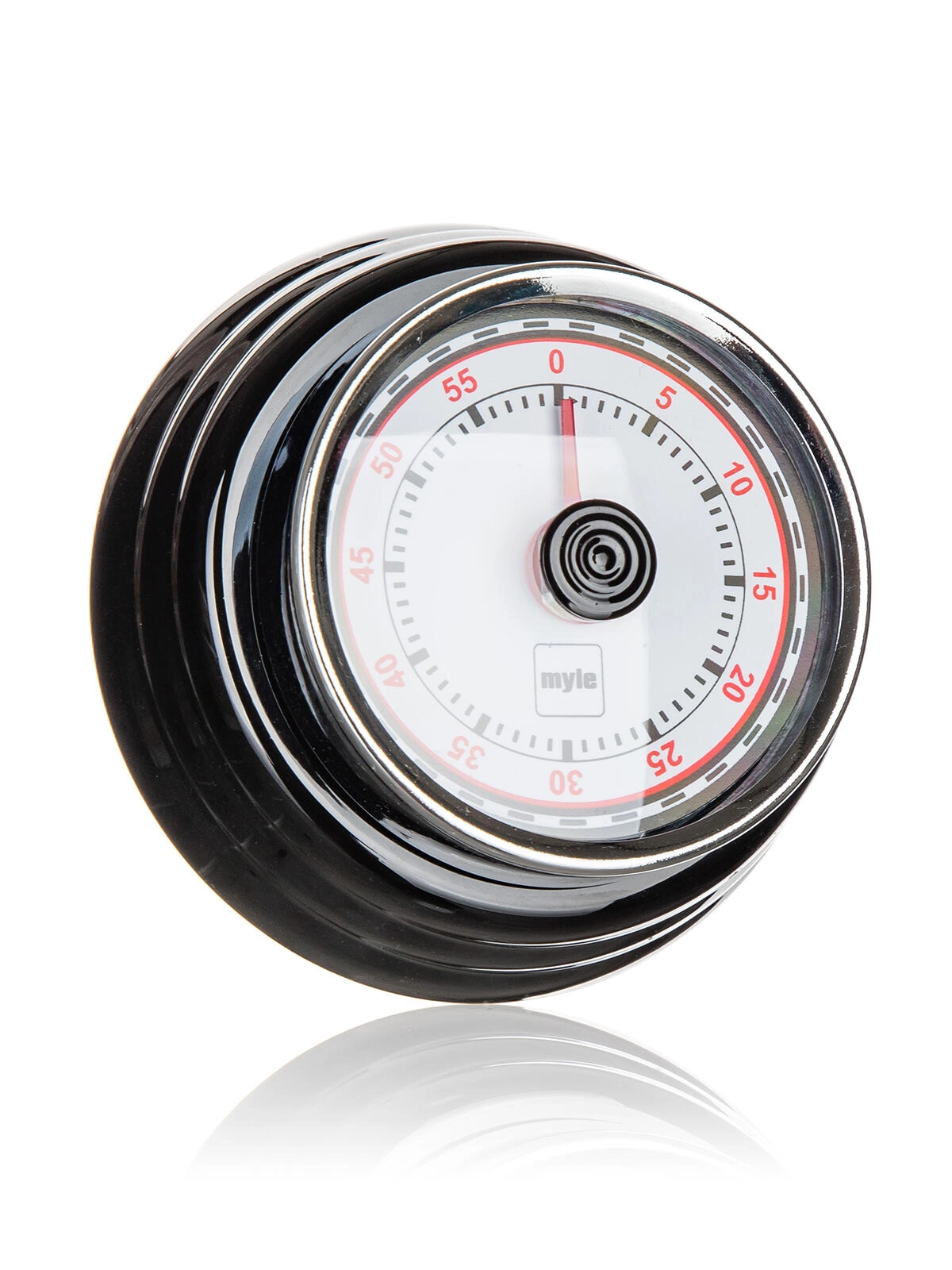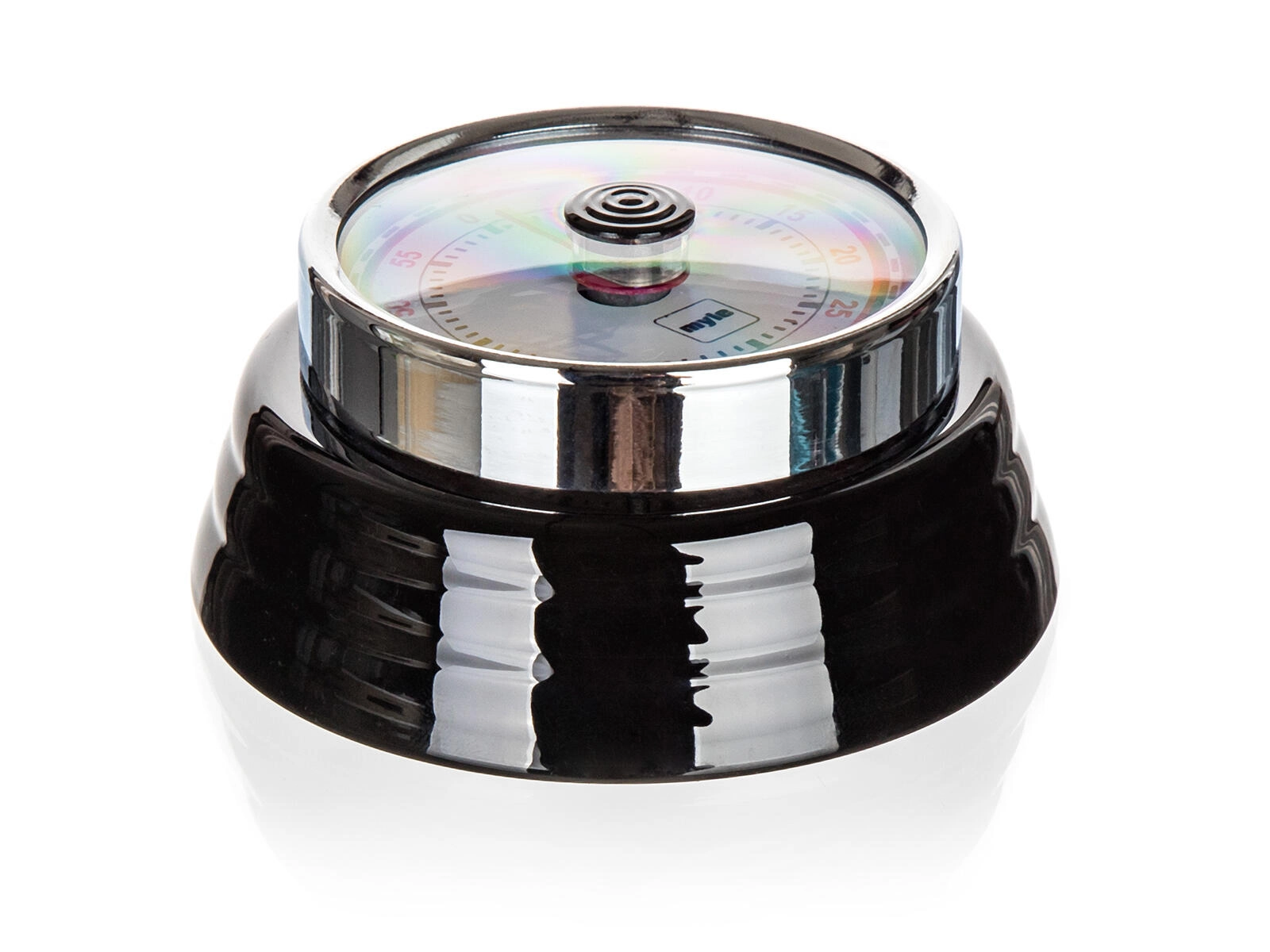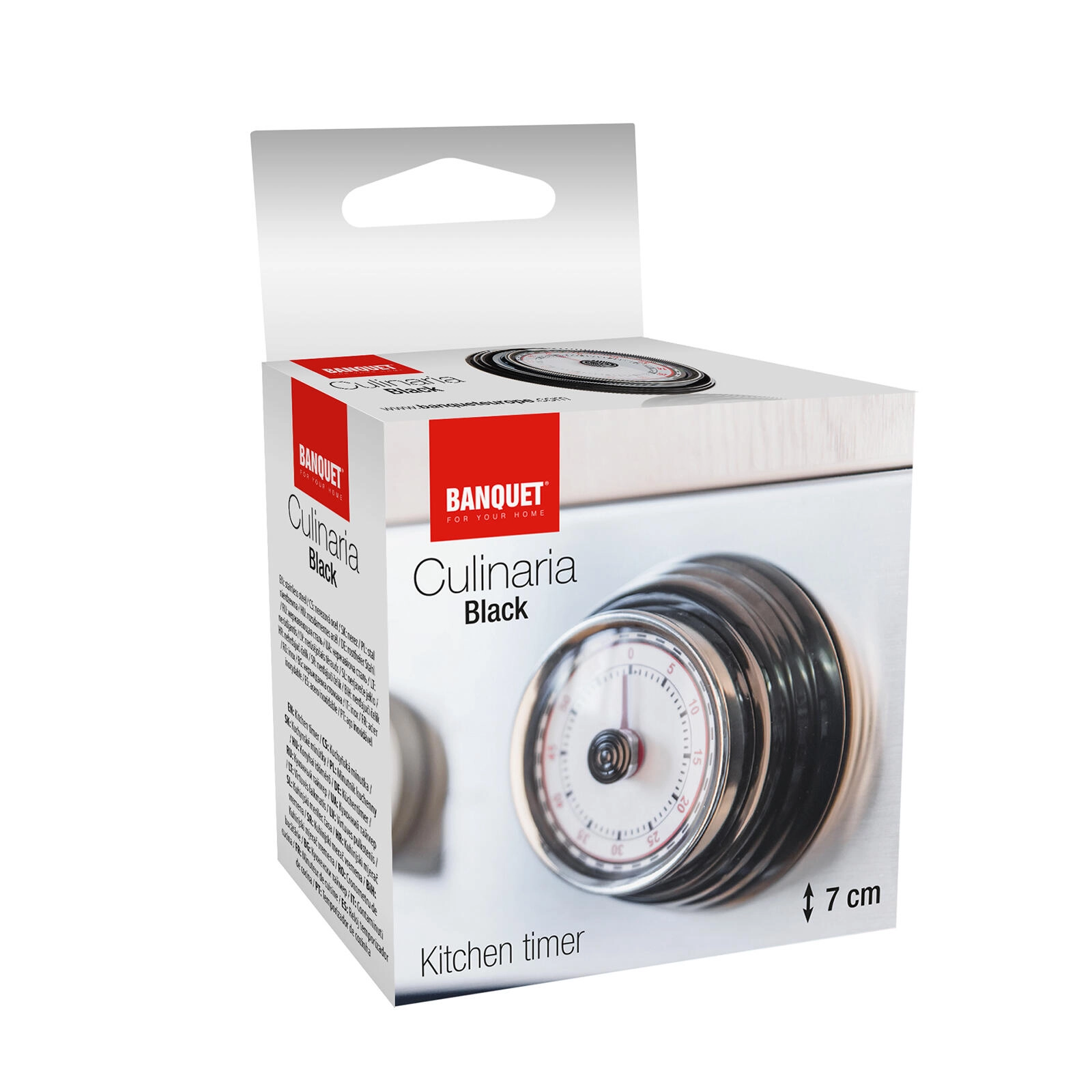 Discover the reliable mechanical CULINARIA timer featuring an elegant black finish, a chromed ring, and an easy-to-read dial with bold minute markers. Set the time quickly by turning the central knob; once time is up, a loud audible alarm sounds.