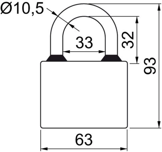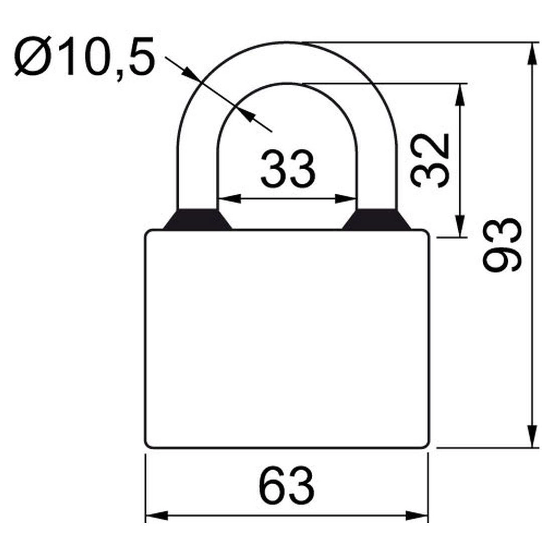 The robust RICHTER OVAL 63 padlock is ideal for reliable security. It features a cast-iron body, a hardened shackle secured at two points, and keyless push-to-lock operation. Rubber rings protect against water ingress, and the cylinder with 6 spring-loaded pins increases resistance to picking.