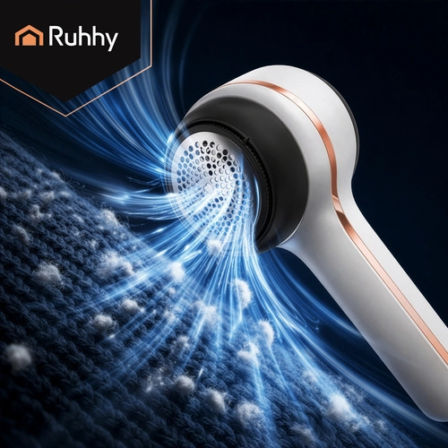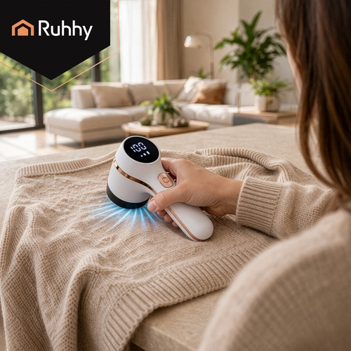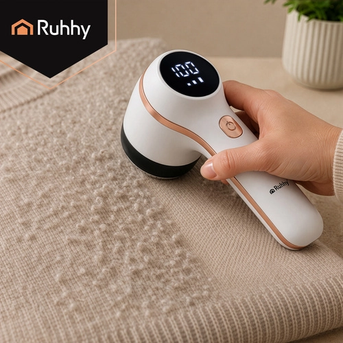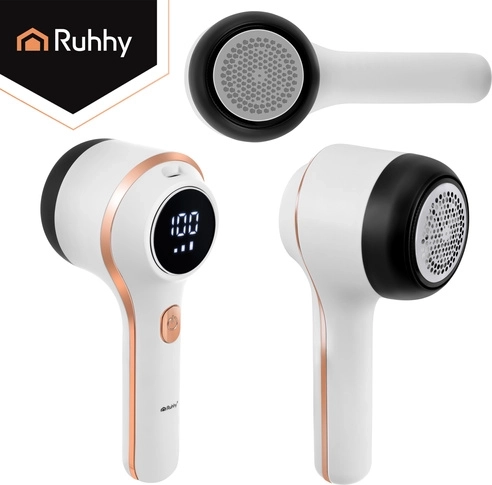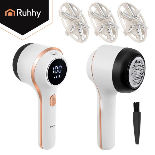 No more pilled sweaters or upholstery. The RUHHY cordless lint remover quickly and gently removes pills, fuzz and loose threads from clothing and fabrics. It offers 6 stainless steel blades for high efficiency, 3 power modes for different materials, a clear LCD display, and convenient USB‑C charging. Thanks to the large 50 mm grid, it cleans larger areas faster and with less effort.