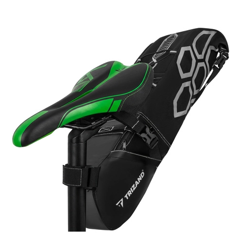 Looking for reliable on-bike storage without carrying a backpack? The TRIZAND under-seat bag with a 12-liter capacity holds everything you need for rides and bikepacking—from tools and tubes to clothing or snacks. The robust fabric with a PU coating protects contents from moisture and dirt, and the reflective print improves visibility in low light.