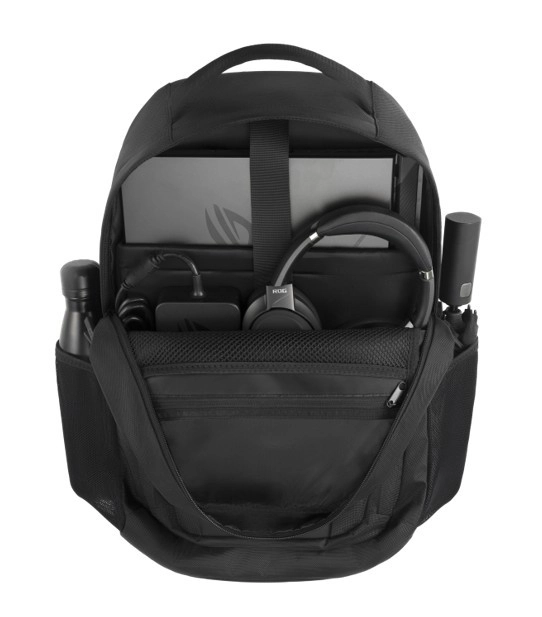 The ROG Ranger BP2800 is designed for comfortable carrying of gaming gear and everyday essentials. The main reinforced compartment securely protects an 18" laptop, while additional sections and organizers keep everything tidy and in place. Two side pockets easily hold a water bottle or umbrella—ideal for the city or short trips.