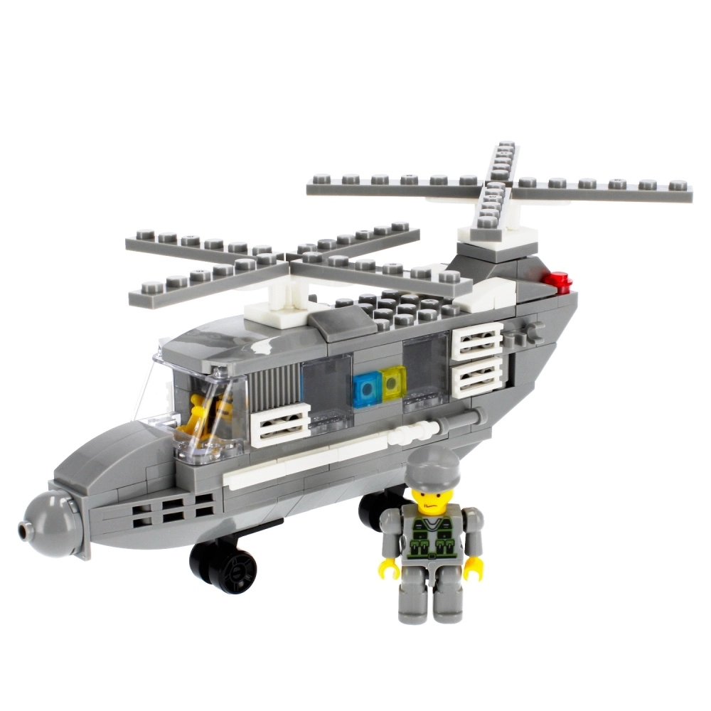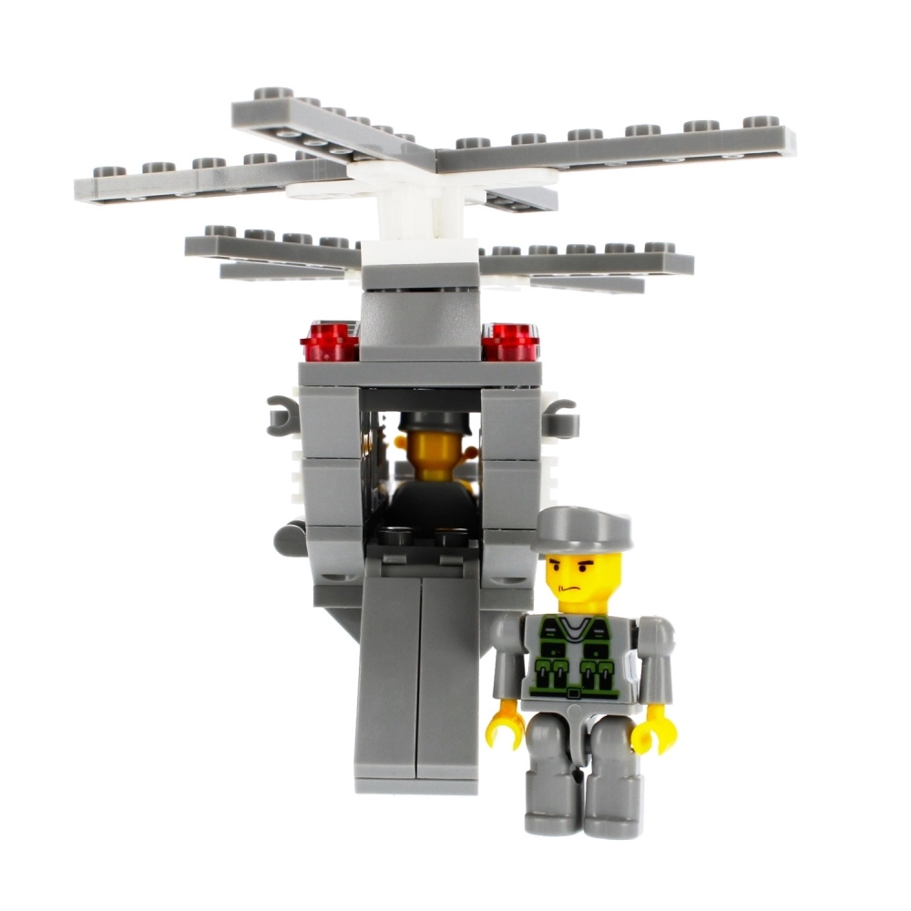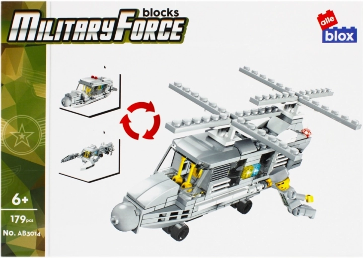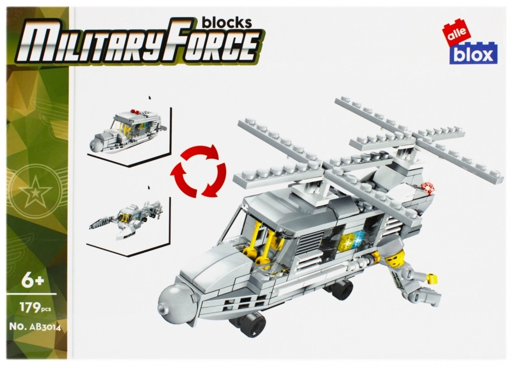 Build an action scene with this military helicopter building set of 179 pieces. The model measuring 18 × 10 × 10 cm features spinning rotors, a detailed cockpit, and fun for children aged 6 and up. A great choice for young builders and aviation fans.