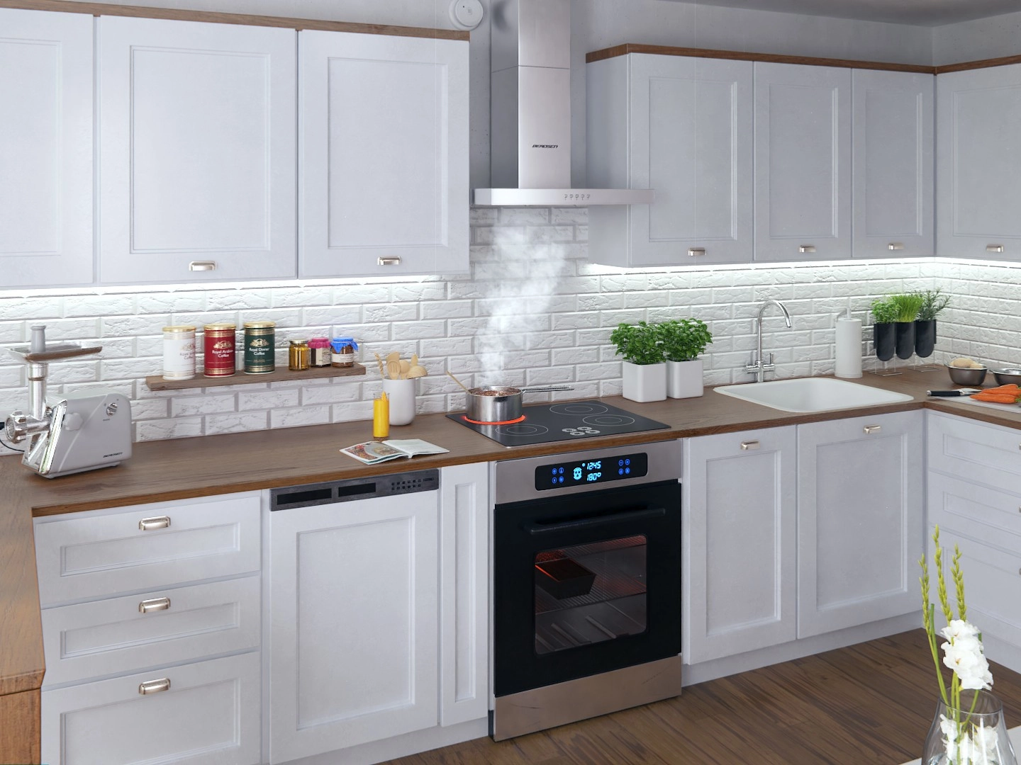 - LED SMD lighting – efficient, natural light over the cooktop