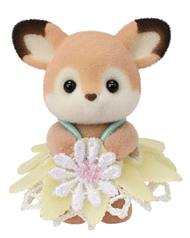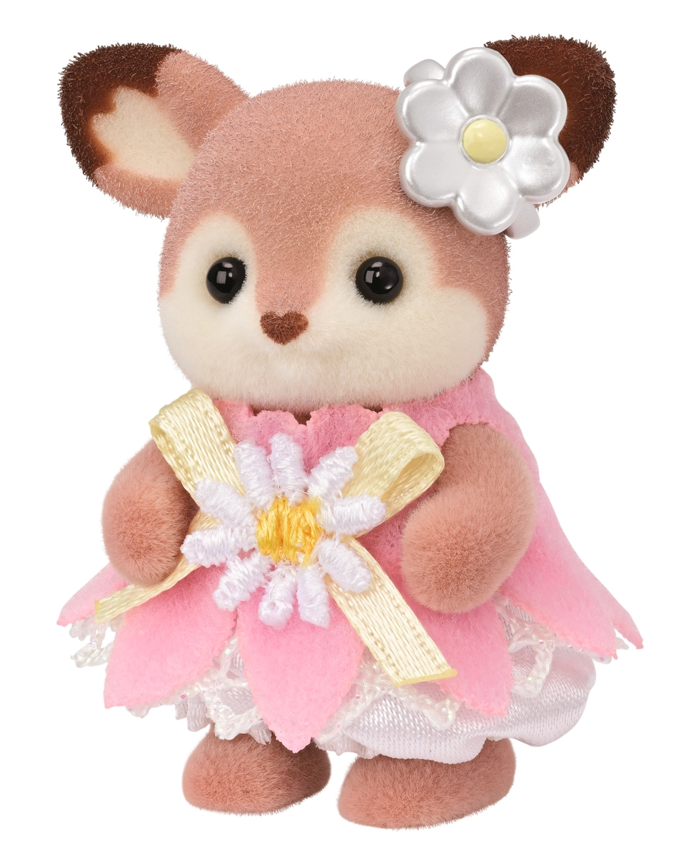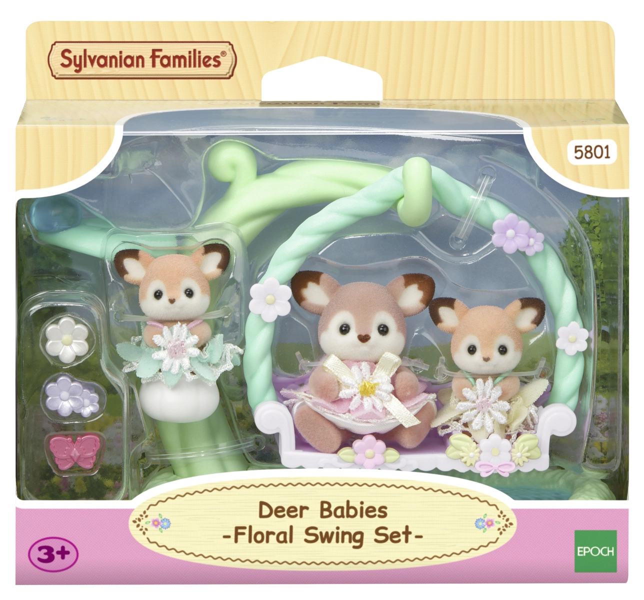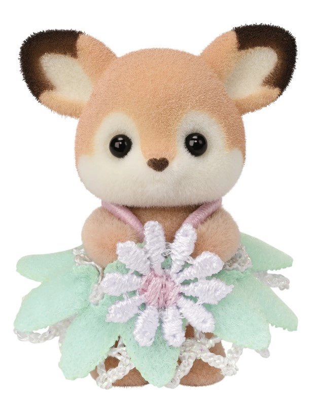 Discover the magical world of SYLVANIAN FAMILIES with the Deer on the Flower Swing play set. The set includes 3 adorable deer figures – Aster, Nova and Rose – and a flower swing over a pond for gentle rocking. The figures are covered with soft flocking, have movable limbs and head, and can be dressed and accessorized. The play encourages imagination, creativity and role play.