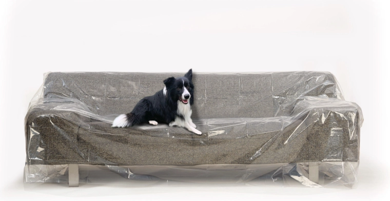 Transparent PE cover with a thickness of 50 μm reliably protects against water, dirt, and dust while keeping the sofa’s appearance visible.
