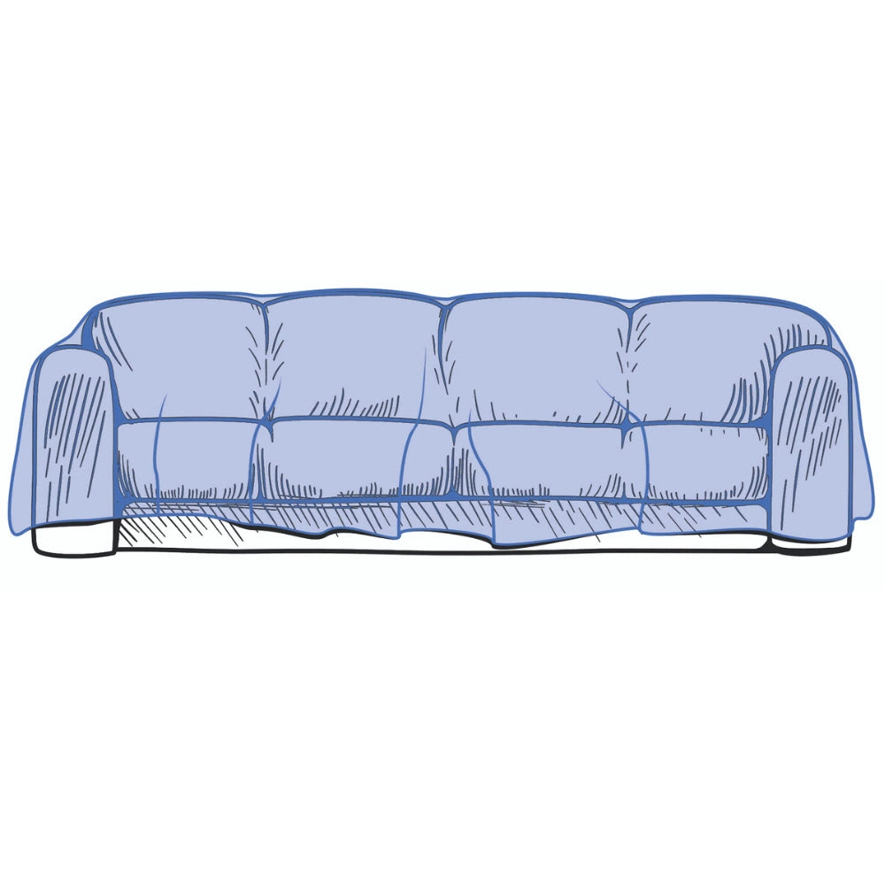 Thanks to the precise dimensions of 304.8 × 137.2 cm, the cover fits most 3-seater sofas and handles typical risks such as paint, liquids, dust, moisture, dirt, sand, and pet hair. Compared to standard painter’s film (approx. 7 μm), it is many times stronger and suitable for repeated use.