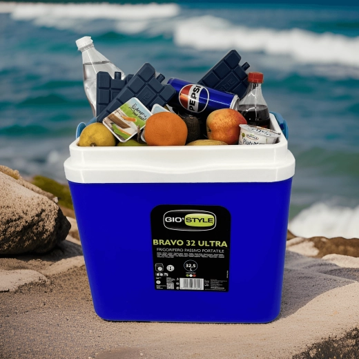 The practical KAMAI BRAVO tourist cooler bag with a capacity of 32.5 L keeps your drinks and food cold for a long time thanks to quality insulation. It is easy to carry thanks to the sturdy handle, has compact dimensions for transport in a car, and fits 2 L bottles. Ideal for picnics, beach, camping, and travel.