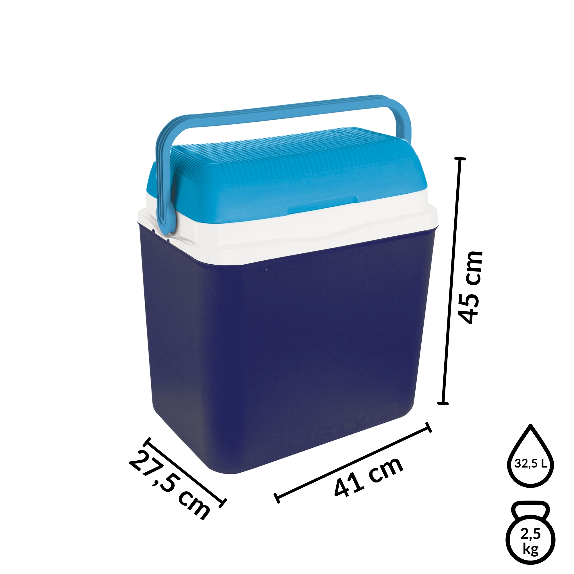 Tourist cooler bag 32.5 L KAMAI BRAVO, blue with blue lid and handle