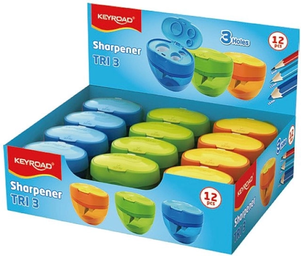 The Keyroad Tri Plus sharpener is a universal solution for all types of writing and drawing tools. Thanks to the three hole diameters (8 mm, 11 mm, and 16 mm), you can easily sharpen standard pencils, classic colored pencils, and thick jumbo pencils. The integrated high-capacity container keeps your workspace tidy, and the transparent lid prevents accidental spilling of shavings.