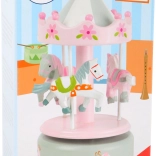 This classic wooden music box in pastel pink, featuring a finely decorated carousel and horses, will delight both young and old. When the metal mechanism is wound, the carousel rotates smoothly and the box plays a gentle melody that creates a calm atmosphere before sleep.