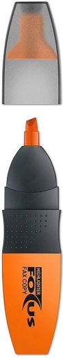 Practical ICO Focus highlighter in orange for school, office, and home. It offers an ergonomic shape for comfortable writing, a chisel tip 1–4 mm for precise and broad strokes, and fluorescent ink that does not appear when copying or faxing.