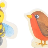 - Wooden picture book + 2 wooden figures (bee, bird)