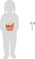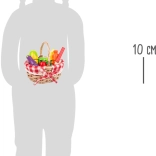 This quality set includes a wicker basket with a checkered cloth and wooden pieces of fruit and vegetables (strawberries, carrot, eggplant, corn on the cob, apple, banana, etc.). The pieces are connected with hook-and-loop fasteners, so kids can safely “slice” them with the wooden knife and reattach them. A perfect addition to a play kitchen or market stall.