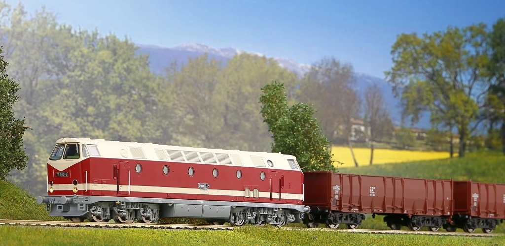 This PIKO starter set is an ideal choice for beginners and advanced modelers looking for a reliable foundation for their railway. The BR 119 locomotive in DR Era IV livery impresses with realistic detailing, quality drive, and smooth running characteristics. Three high-sided wagons complete the consist for authentic operation.