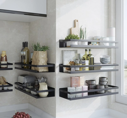 The shelf’s universal look fits perfectly in modern, loft, and rustic interiors. Installation is quick and simple—everything you need is included in the box. Use it not only in the bathroom, but also in the kitchen as a spice rack or for canisters with pasta, rice, and coffee.