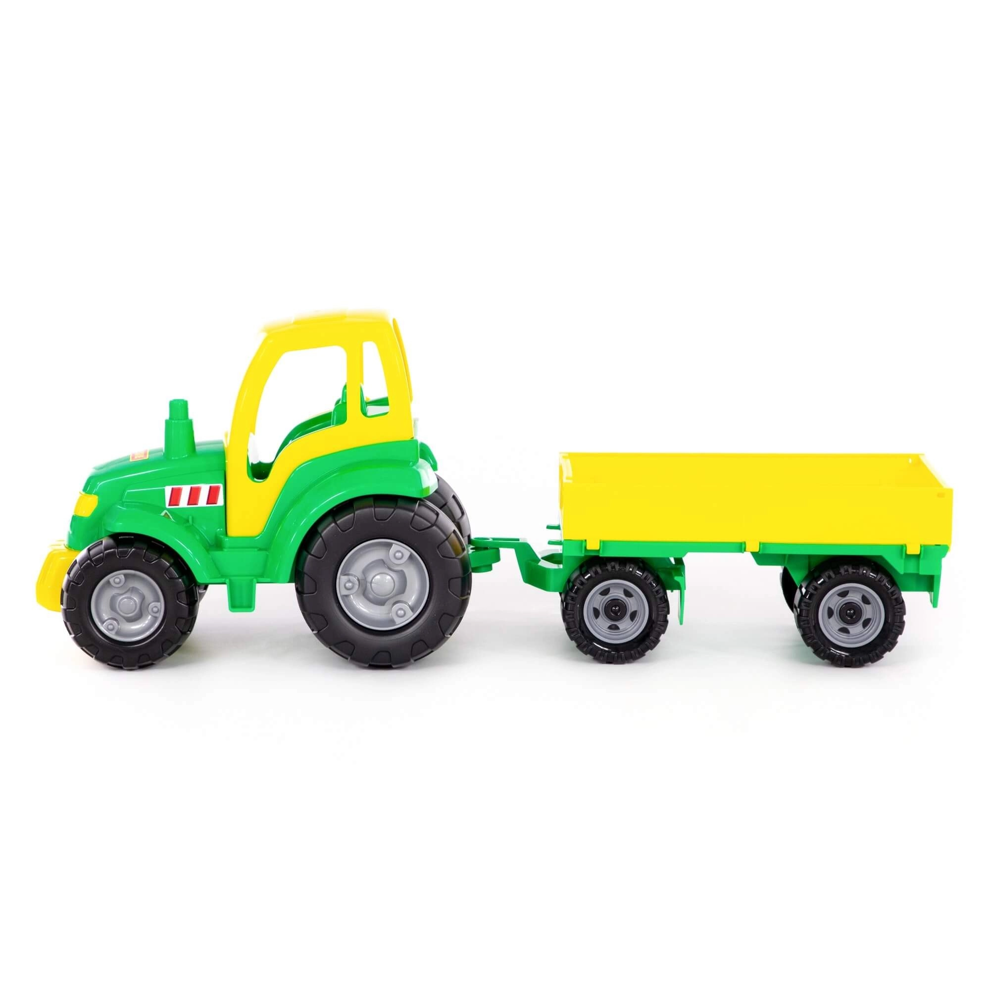 Discover the fun of farm life with this robust plastic tractor with trailer. Thanks to its bright colors, large wheels, and simple controls, kids can enjoy lots of play scenarios—from loading and unloading to transporting little treasures.