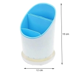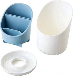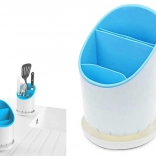 The utensil organizer offers three main compartments for grouping similar items during drying. It features a shallow compartment for smaller items like spoons and has a special knife slot and layered compartments.