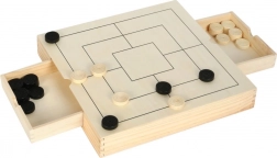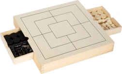 This elegant wooden set offers three classic strategy games in one: chess, checkers, and Nine Men's Morris. Thanks to its compact dimensions of 28 × 28 × 4 cm and integrated drawers, it is ideal for travel and home. Every piece has its place, so nothing gets lost and the game can start within seconds.