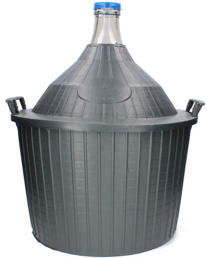 The carboy sits in a sturdy plastic cage/basket that protects the glass from impacts and makes carrying easier. For proper sealing, we recommend a 43/40 mm rubber stopper with an airlock hole, which safely vents gases produced during fermentation.