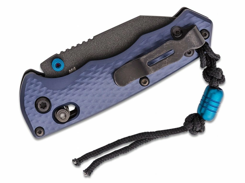 The compact EDC knife Benchmade Full Immunity Crater Blue combines style, durability, and reliable performance for everyday carry. It features a Wharncliffe blade made of CPM M4 steel with a Cobalt Black Cerakote finish, secure AXIS lock, and a lightweight gray-blue 6061‑T6 aerospace aluminum handle with a clip and lanyard hole.