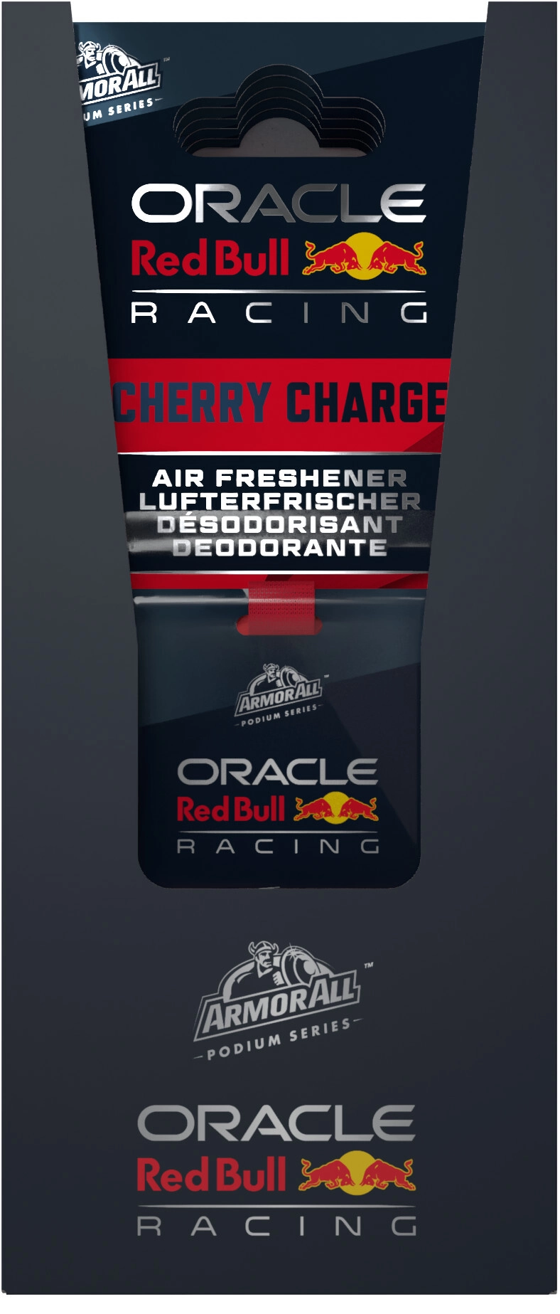 This premium car air freshener, inspired by the world of motorsport, brings fresh aroma and style in one. The Cherry Charge fragrance blends juicy cherry notes with soft leather and sensual musk, creating a pleasant atmosphere on every drive. The ORACLE RED BULL RACING themed design adds a sporty character to your car.