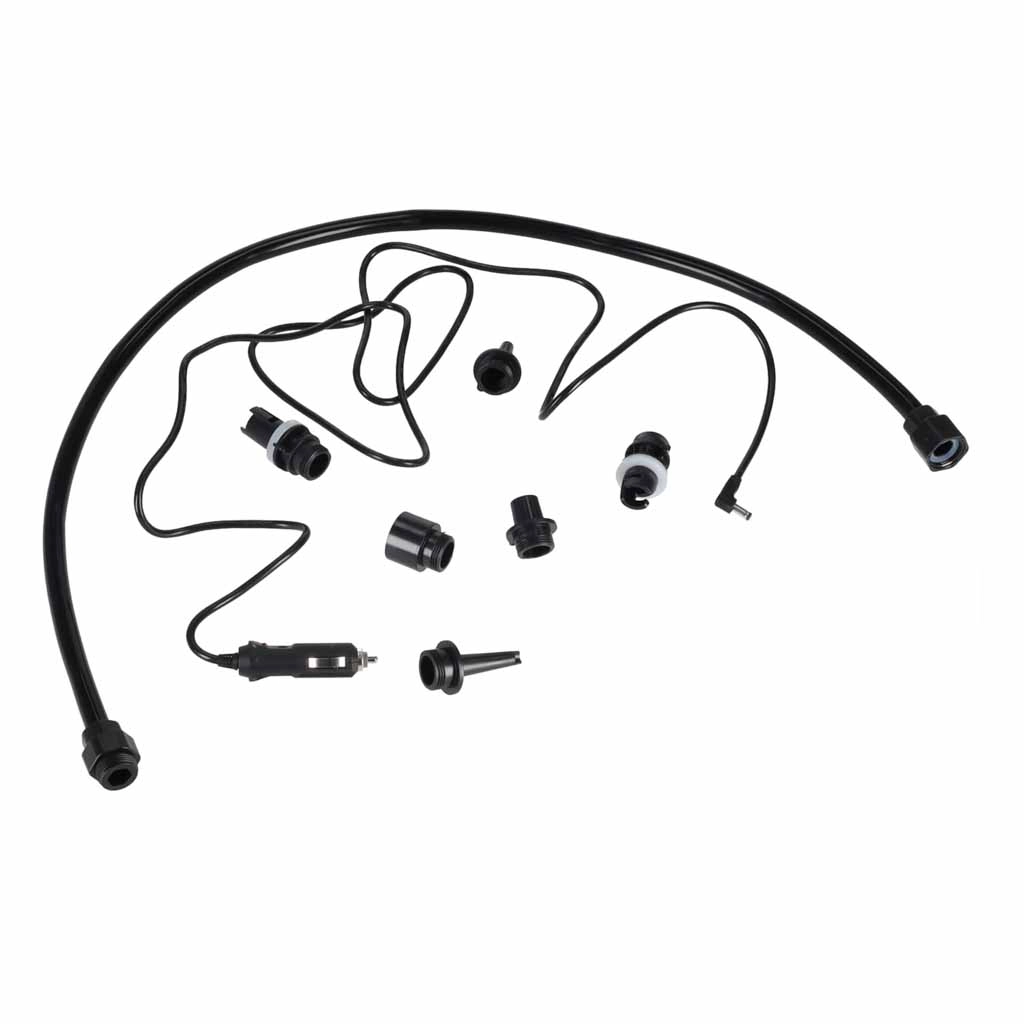 Compact and powerful car pump for SUP, kayaks, and boats with a max pressure of 22 PSI and 140 W power. With 12 V car cigarette lighter power, automatic shut‑off (Auto‑Off), and an LCD display with digital manometer, you can inflate your gear quickly, accurately, and effortlessly. Includes a set of 6 nozzles for different valves.