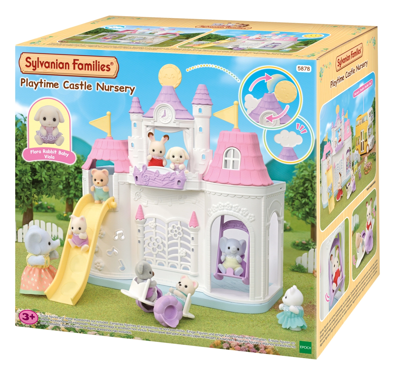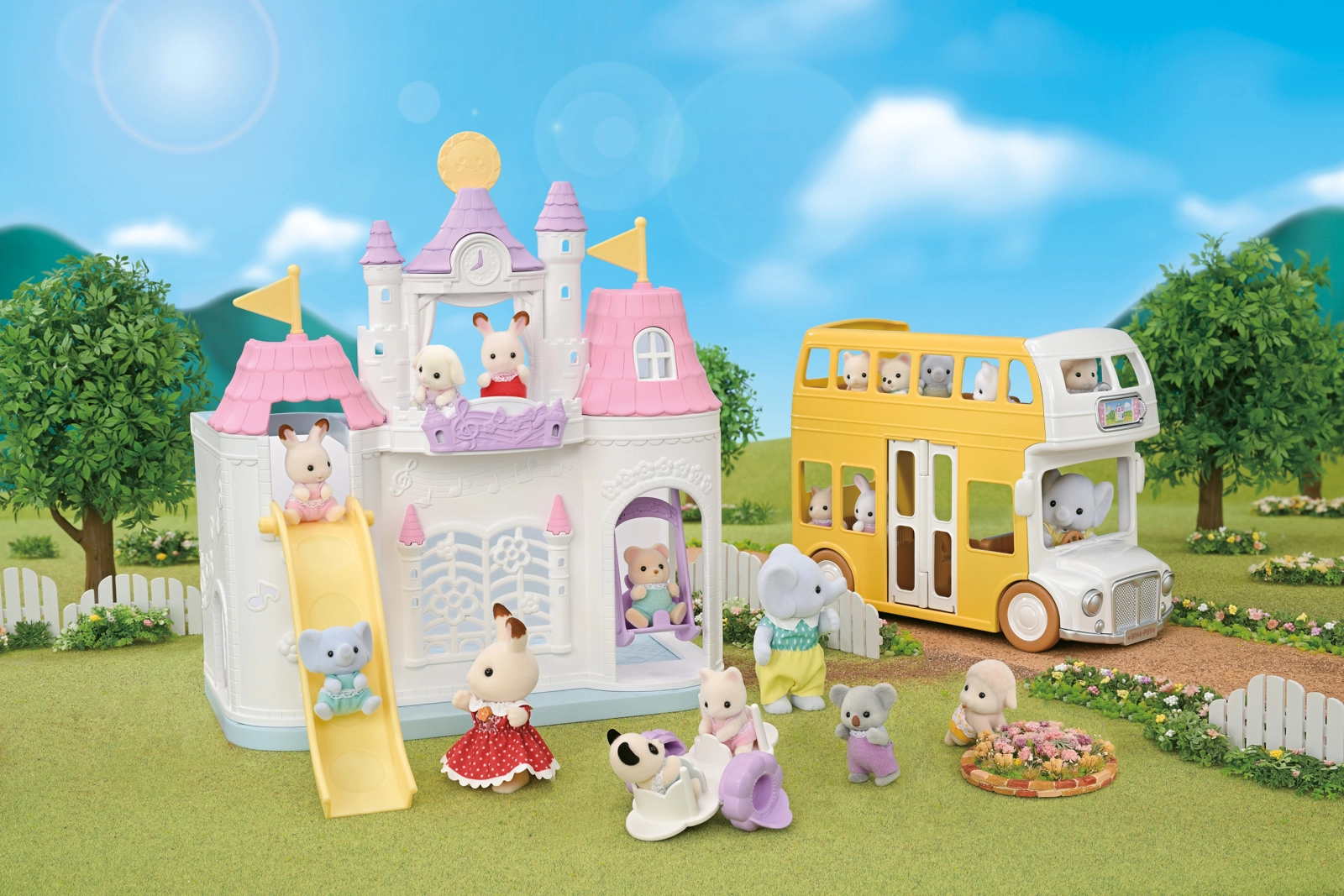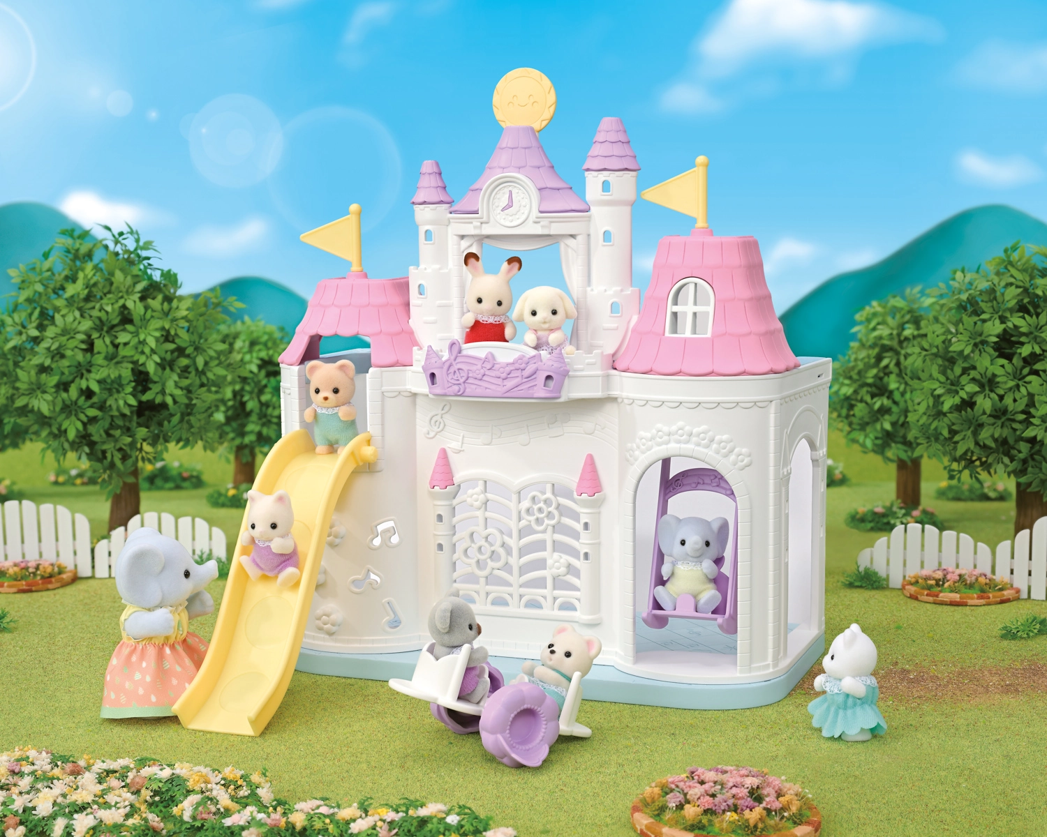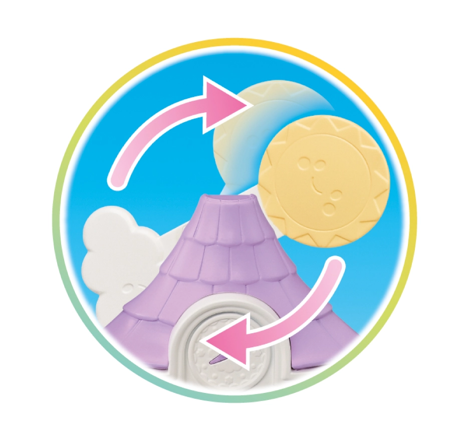 There’s also a unique weather-change play feature: switch between sunny and rainy days and move the rooftop arch and accessories to fit the current scene. The set includes the cute baby figure Flora Rabbit with poseable limbs and head; the outfit can be removed and swapped.