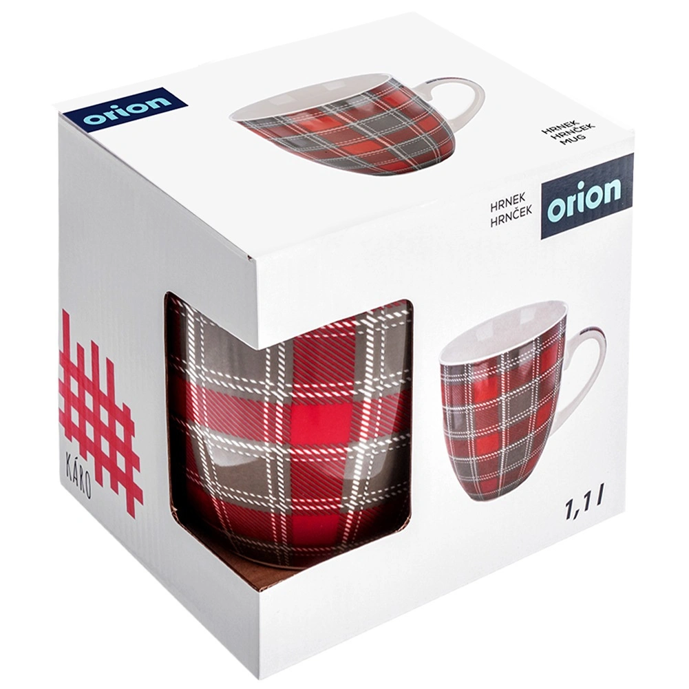 Enjoy your favorite hot drinks in a generous serving. This XXL 1 L porcelain mug combines practicality with a decorative look – the red–gray checkered motif brightens any table and adds a pleasant atmosphere to your interior.