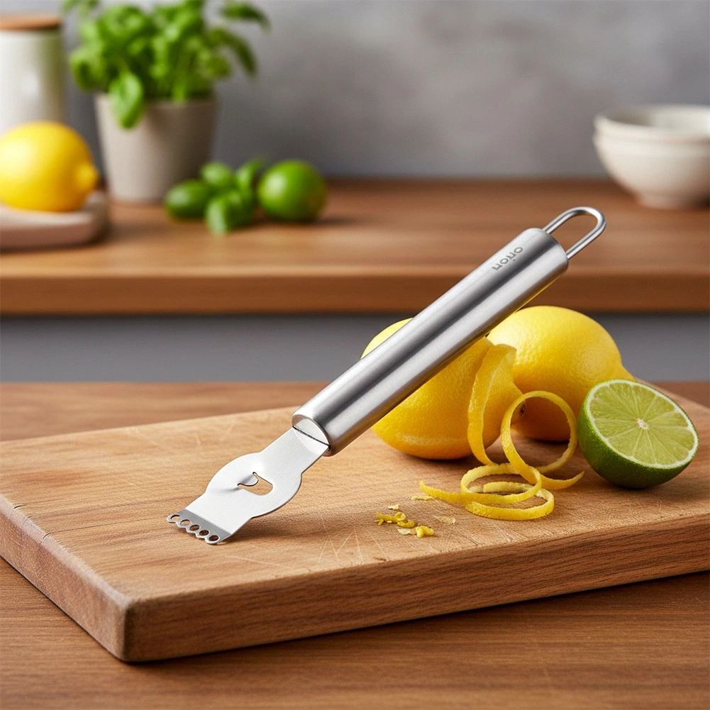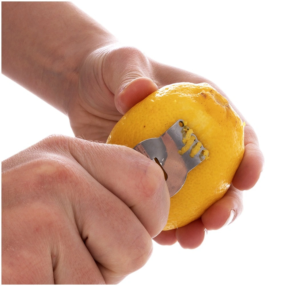 A practical citrus peeler and zester made of stainless steel for easy grating and peeling of lemon, orange, lime, or grapefruit zest. Thanks to the sharp holes and channel knife, you can create fine shavings, strips, and decorative spirals. Durable stainless steel, a comfortable grip, and a hanging loop make it a great helper for any kitchen and professional setting.