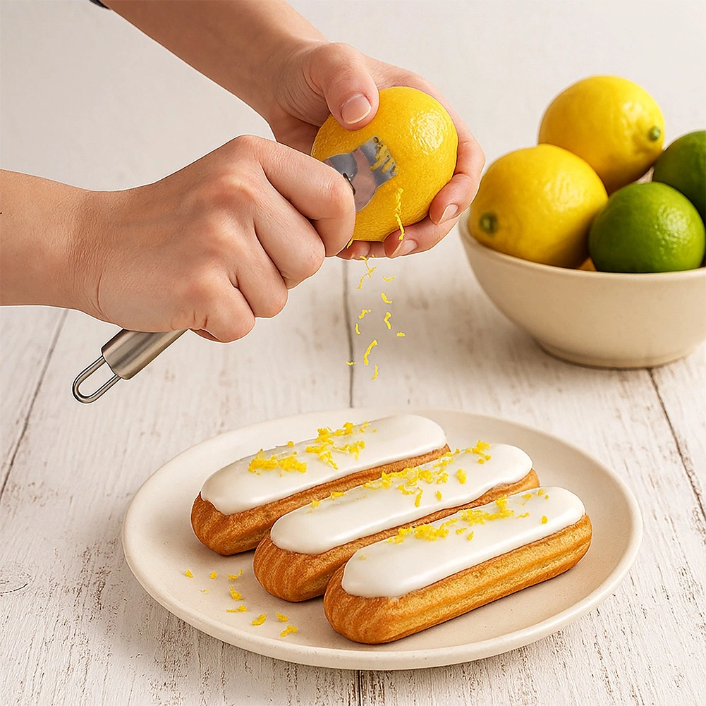 Discover a versatile kitchen tool that finely grates zest while also creating longer strips to decorate desserts, cocktails, and savory dishes. The stainless-steel build ensures long life, hygiene, and easy cleaning, while the ergonomic handle fits comfortably in the hand.