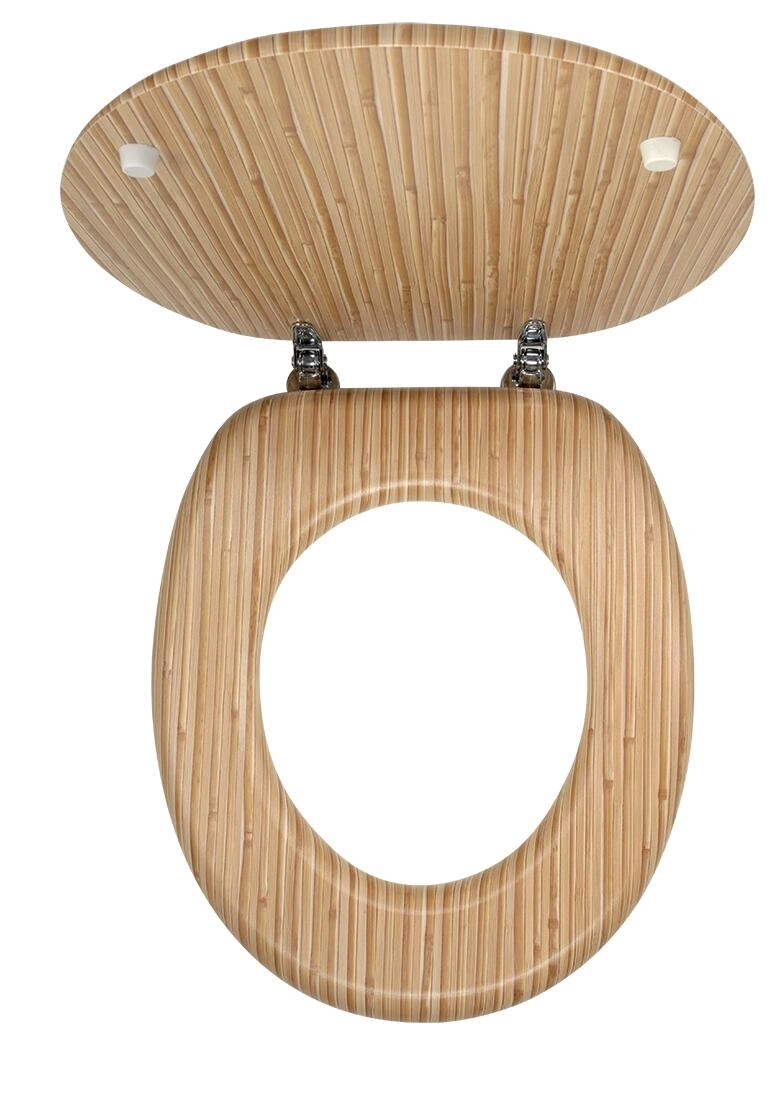 An elegant bamboo veneer toilet seat gives your bathroom a natural look and timeless style. Thanks to the veneered MDF, it is sturdy and durable, while the chrome-plated brass hinges ensure stability and long service life.