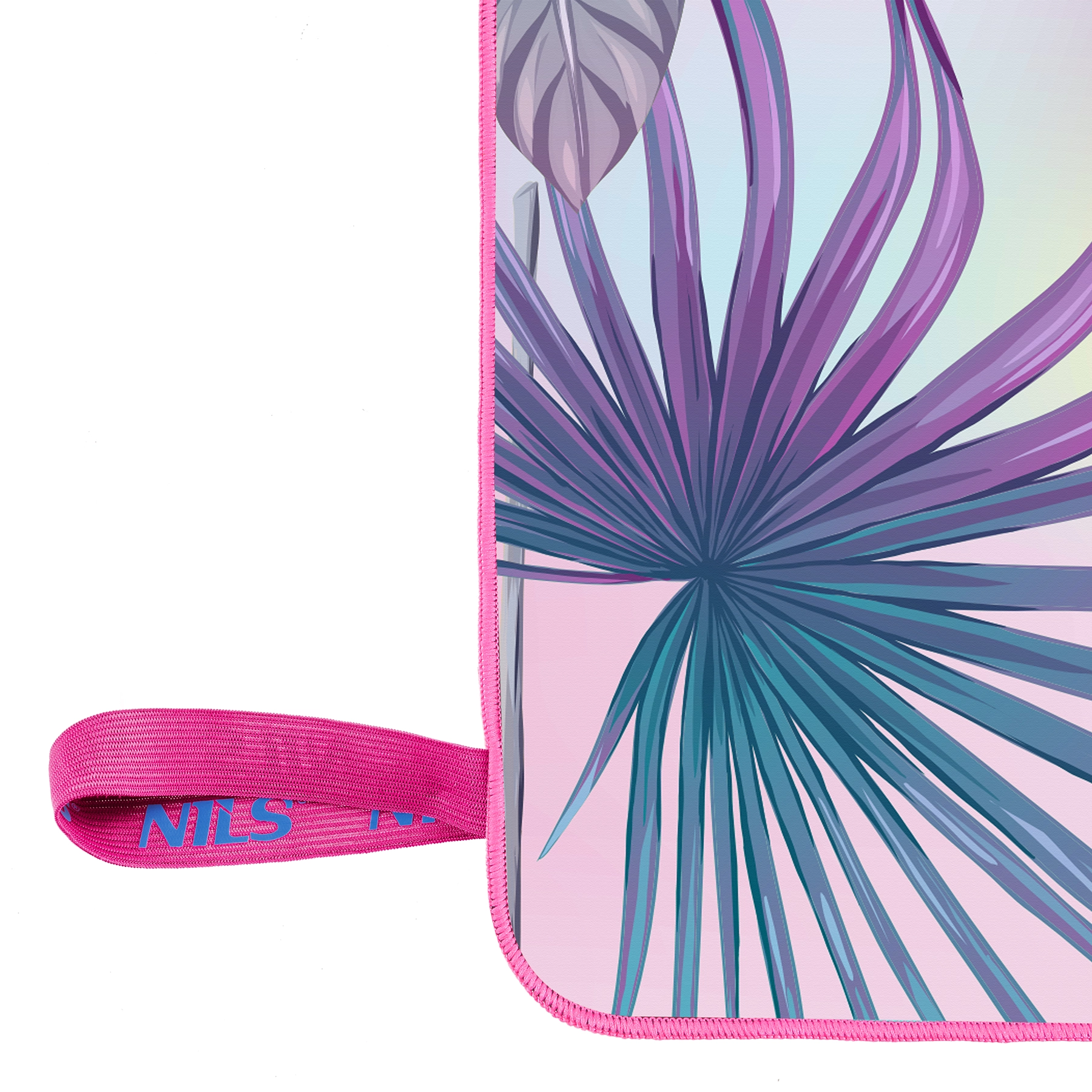 Enjoy comfort anywhere—the NILS Camp towel made from soft microfiber has a porous structure that ensures very fast moisture absorption and drying. The stylish tropical design with pineapples and palm leaves in shades of purple, turquoise, and pink adds a fresh look to your gear.