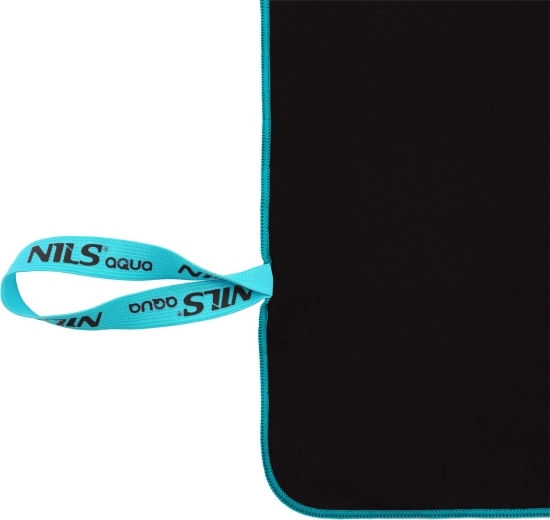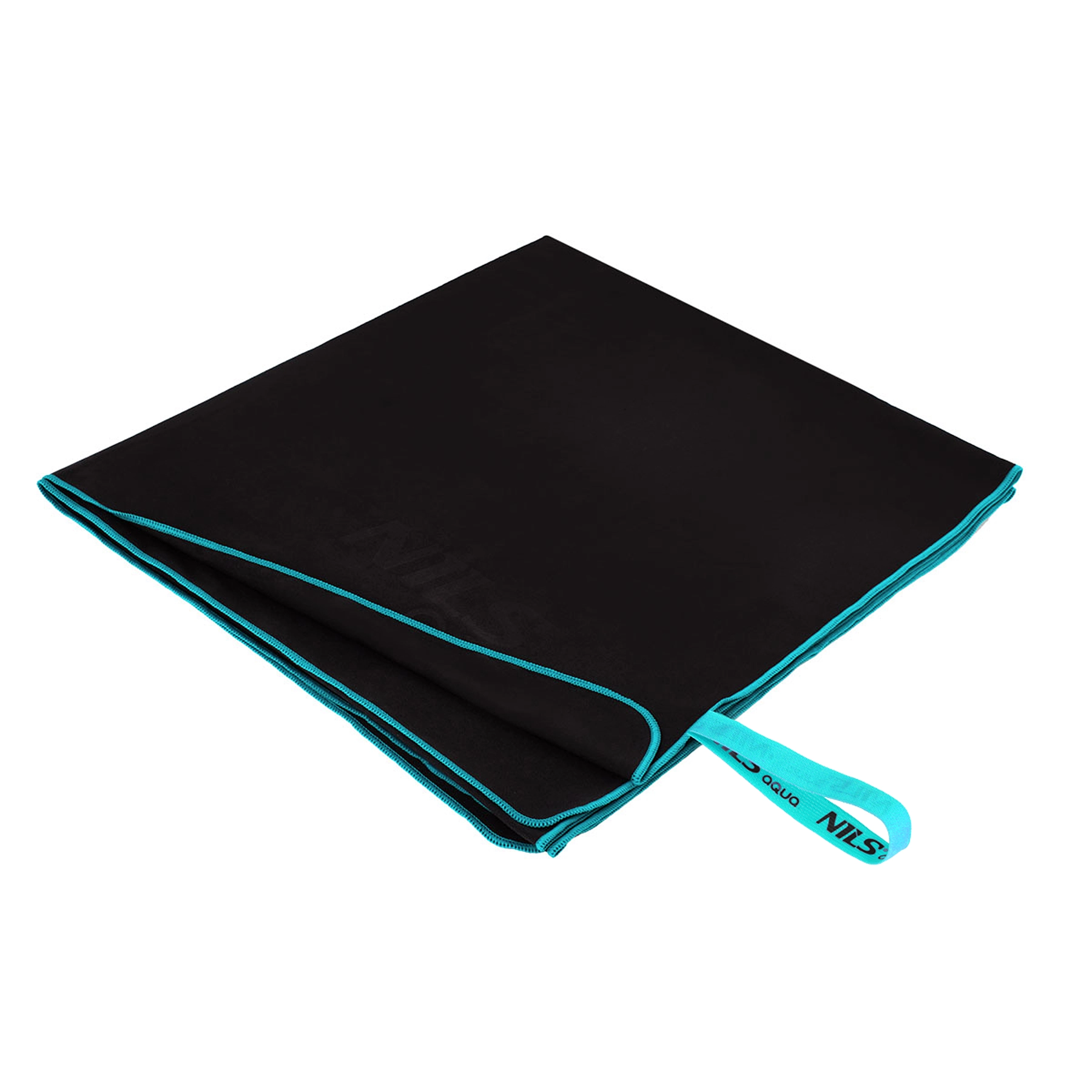 Fast-drying microfiber towel NILS aqua, black/blue, 200 × 90 cm