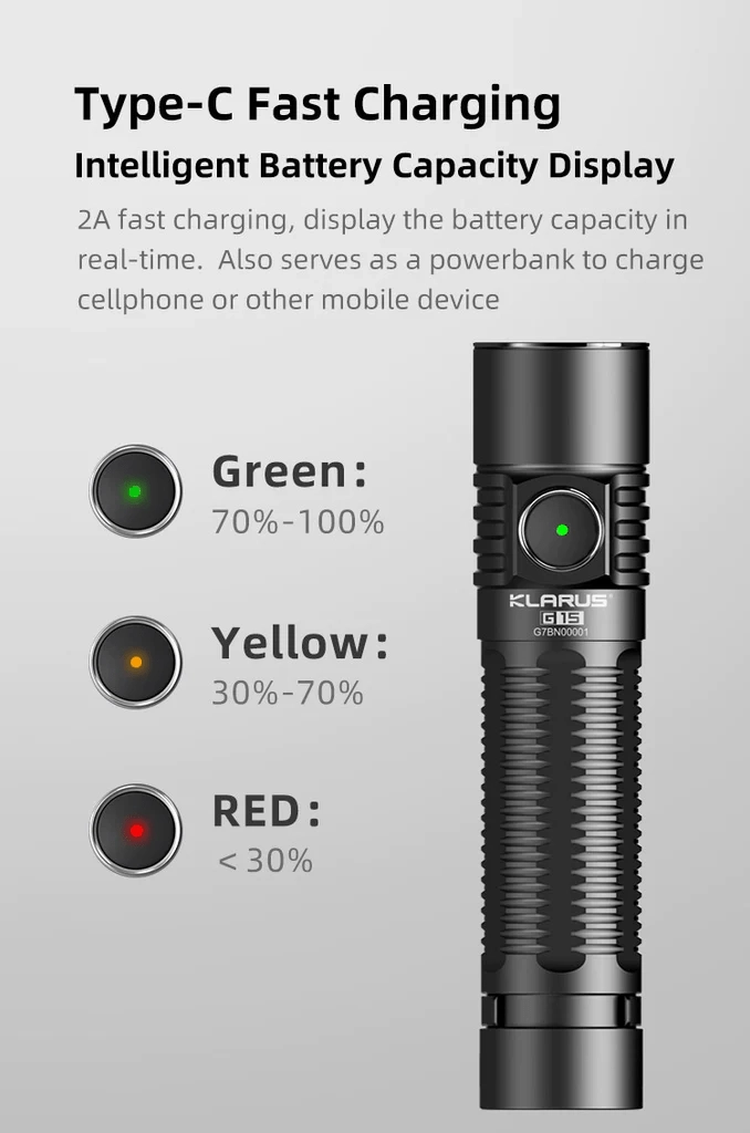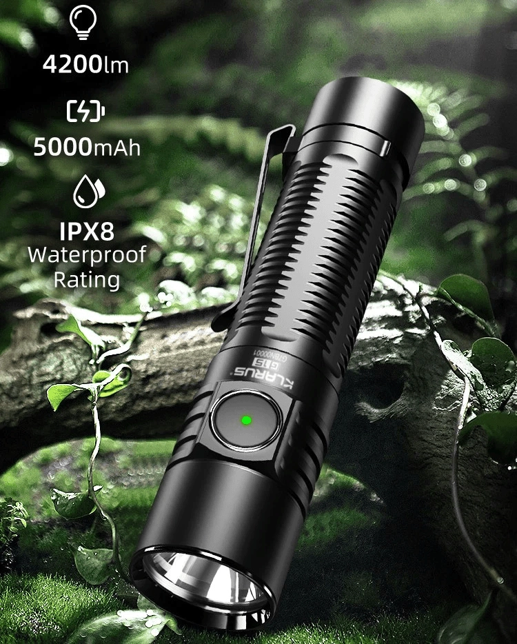 The Klarus G15 V2 is a compact and lightweight EDC flashlight for everyday carry delivering up to 4200 lm200 m beam distance, and fast charging via USB‑C. It’s powered by a modern 21700 5000 mAh battery, offers 5 brightness levels and 3 emergency modes, IPX8 rating and impact resistance up to 1 m — a reliable partner for work, trips, and home use.