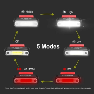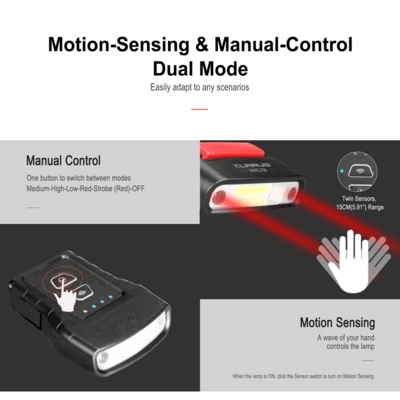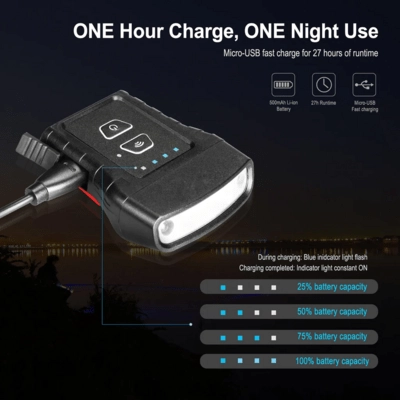 The integrated Li‑ion 3.7 V / 500 mAh battery charges via USB and provides flexible runtime depending on the selected mode. Operation is intuitive: one button to switch modes, and another button to activate the motion sensor. An ideal choice for running, camping, hiking, and field work.