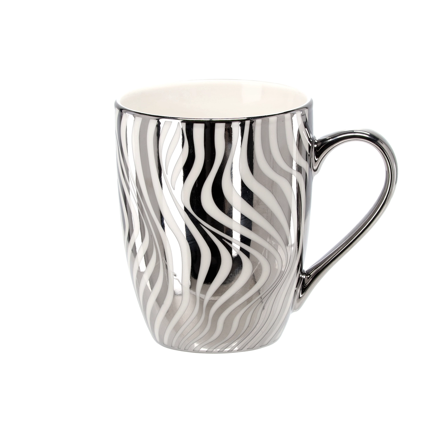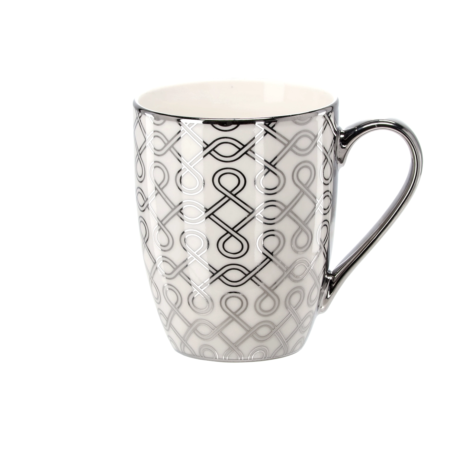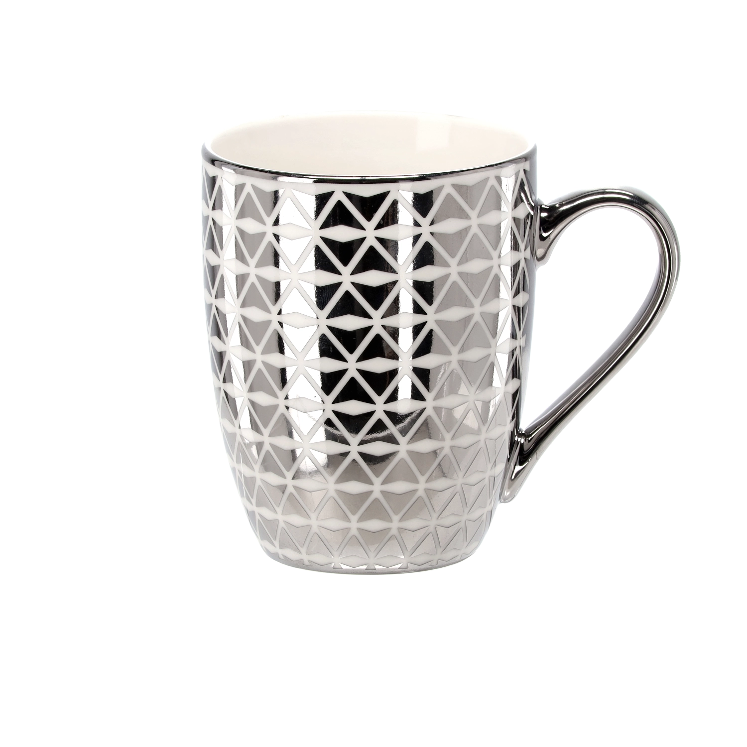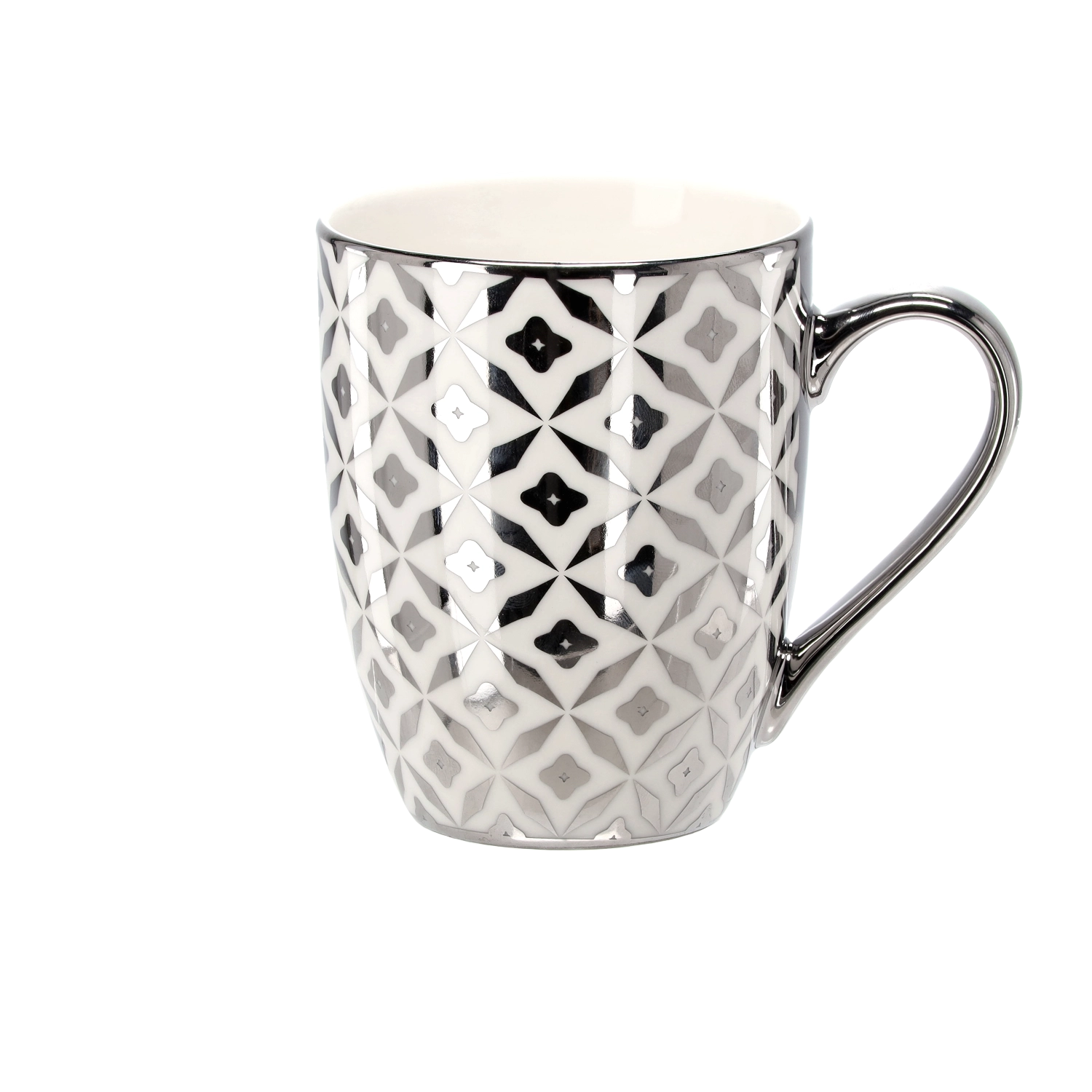 The metallic silver-white decor with geometric motifs gives the mug a sophisticated character and elevates any table setting.