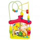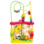 This multifunctional wooden activity maze from Bino is designed to entertain while developing skills. Beads on metal wires, rotating and sliding elements, and illustrated animal motifs stimulate curiosity, focus, and hand–eye coordination.