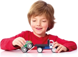 The SmartMax intelligent building set offers children the opportunity to develop creativity and motor skills. The set includes 18 pieces and 7 pairs of wheels for creating diverse vehicles. Easy assembly with magnets allows for easy connection of all parts. Additionally, the set includes a booklet with instructions guiding children through various constructions.