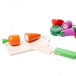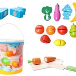 Colorful wooden fruit and vegetables motivate children to creative play. Cutting, assembling, and sorting naturally support coordination, concentration, and vocabulary.