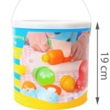 All parts fit neatly into the practical lidded bucket, which makes carrying and storage easy and mess-free. The set is great for independent play and group activities, supporting cooperation, creativity, and early counting.