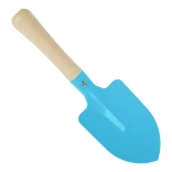 A lightweight metal trowel with a wooden handle and a compact watering can let children plant and water comfortably and safely.