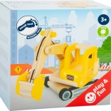 This wooden excavator in a natural-yellow design brings realistic construction-site play. Thanks to the full 360° rotation and a functional bucket with pulley, children can easily scoop, move, and dump material. The toy is made from 100% wood, is sturdy, stable, and designed for everyday play.