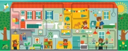 Cheerful illustrations with bears and house-like rooms inspire storytelling and creative play.