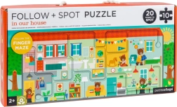This creative PETIT COLLAGE set combines a puzzle and an interactive maze into one game that entertains and teaches. After assembling 10 large pieces, you get a long house scene (53 × 21.5 cm) where children trace a marked route with a finger while discovering 20 hidden objects.
