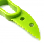 The plastic blade cleanly cuts the avocado without damaging the flesh. The ergonomic shape ensures a secure grip and precise cuts.