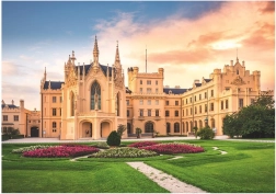 Create a scene of Lednice Castle, a UNESCO-listed monument, made from durable, indestructible cardboard. This puzzle is not only non-hazardous but also meets all safety standards. Special puzzle glue allows you to preserve the result as a unique decoration.