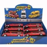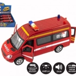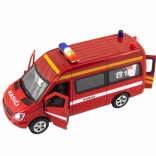 A realistic metal fire truck with plastic details for little rescuers. It offers light and sound effects, a pull-back for speedy rides, opening front and rear doors, and a compact 15 cm size. Batteries are included, so the fun starts right away.