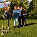 A fun and competitive movement game for kids and adults that develops accuracy, speed, and physical fitness. Try 6 game variants with throwing rings onto a wooden cross-shaped stand, play outdoors or indoors, and enjoy family fun anytime. Includes a wipe-clean scoreboard, marker, hourglass timer, and a Czech-Slovak manual.